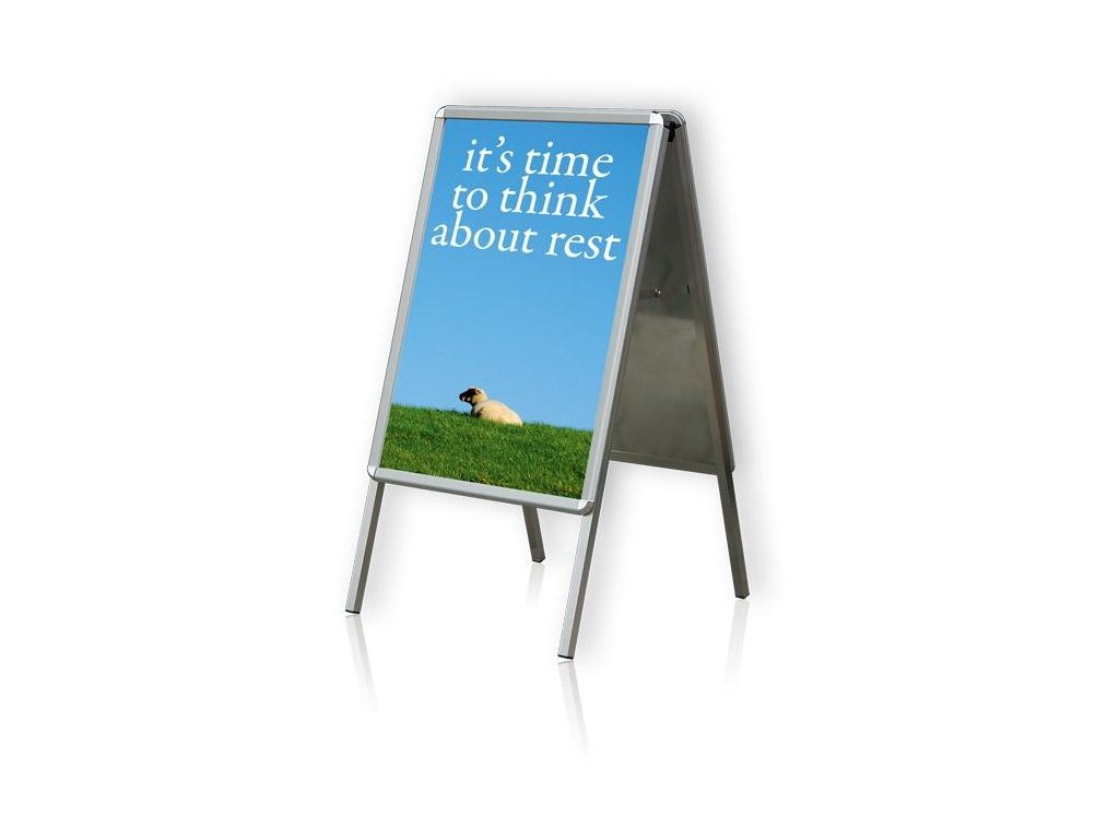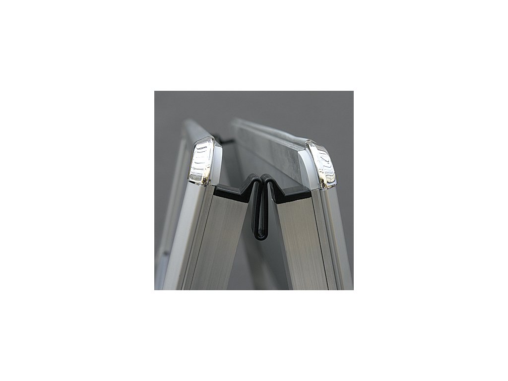 Profesionálny reklamný A-stojan s oblými rohmi a pevnou hliníkovou konštrukciou s profilom 32 mm je ideálny na prehľadnú a bezpečnú prezentáciu veľkoformátových plagátov.