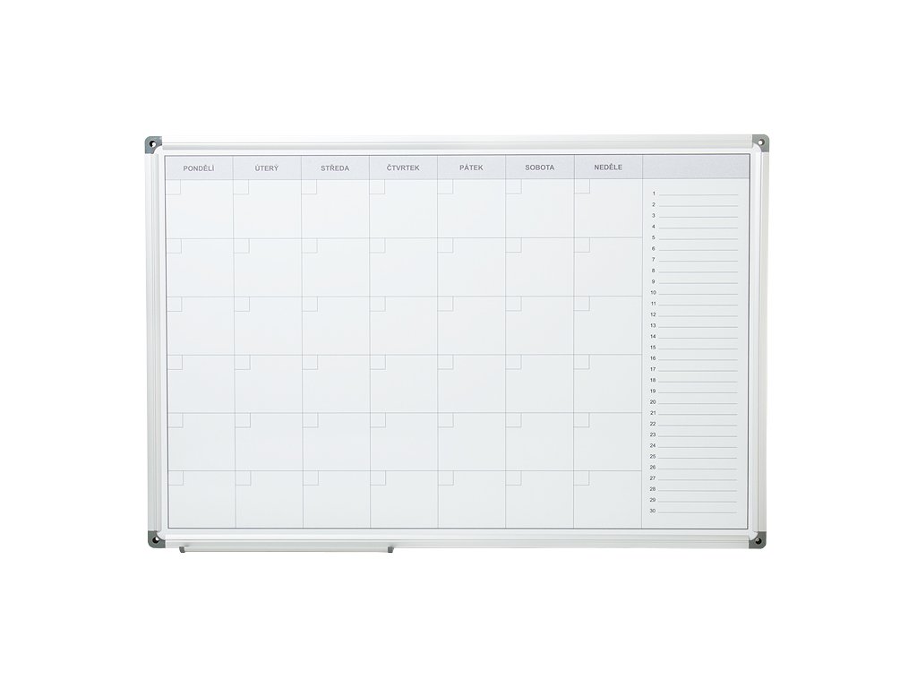 Praktická magnetická mesačná plánovacia tabuľa s lakovaným povrchom a pevným hliníkovým rámom. Vďaka kvalitnej tlači mesačného rastra je ideálna na prehľadné plánovanie pracovných úloh, zmien alebo osobných aktivít.